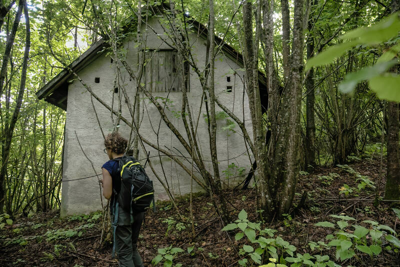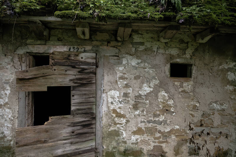 Poco prima di ritrovare il sentiero che porta a Teno, proprio vicino al corso di un piccolo rio, intravedo un'altra casa inghiottita nella stretta morsa dei rami e dei rampicanti. Fatto un giro intorno ad essa non posso non notarlo; ci sono le finestre, ma nemmeno una porta. Non mi stupisco più di tanto. Questo è un posto magico, che uno ci creda o meno.