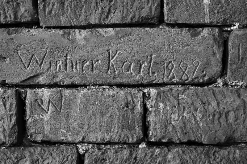 Il forte trattiene il tempo. Le camerate, i corridoi, conservano l’ordine del passato. Migliaia di uomini hanno vissuto qui, e più di ogni altra cosa, sono le pareti a conservare queste prove. Nomi incisi nel mattone, o graffiati nelle vernici cadute, italiani e austriaci insieme. La traccia più lontana che sono riuscito a trovare risale al 1882. I segni dei soldati su muri e pietre, dovunque affiorino, lasciano in bocca l'amaro. Di tante vite restano solo poche righe incise, il resto l'ha mangiato l'oblio.