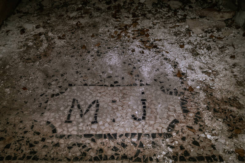 Le iniziali di Josip Mayer sul pavimento di una stanza
