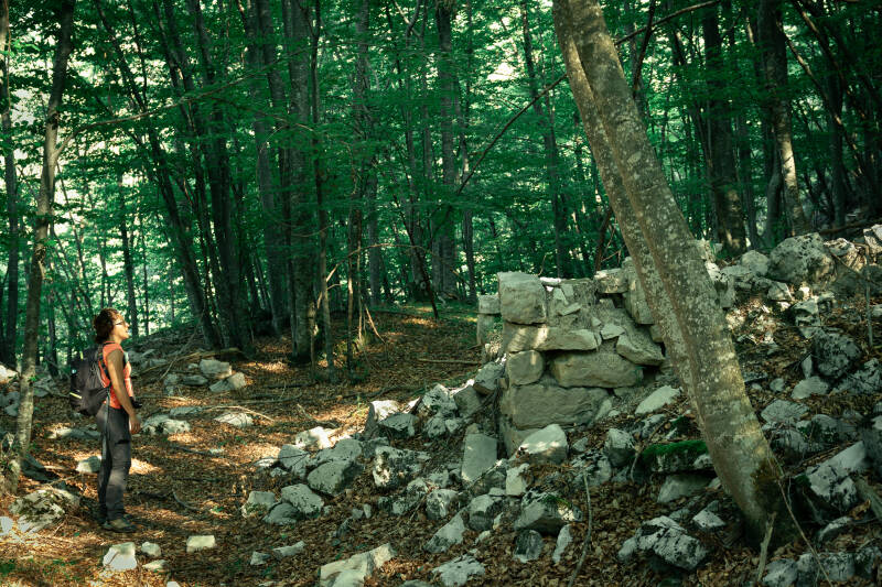 Nel territorio della Valcellina, il Monte Cornetto veglia sulla valle del Vajont con un profilo netto e severo. I suoi fianchi, vestiti di boschi e incisi in balze dirupate, promette fatica. La salita, oltre mille metri di dislivello, non regala molta tregua ma ripaga a ogni tornante con aperture improvvise tra le fronde. Si guadagna quota prima su sentiero, poi su piccoli sassi che salendo diventano più grandi, quindi più faticosi da passare. Sulla via si possono vedere anche le rovine delle case in pietra dei pastori, che un tempo venivano usate come riparo. Molto suggestivi, oggi perfettamente integrati nella vegetazione, si inseriscono nel bosco a perenne ricordo di un passato rurale ormai scomparso.