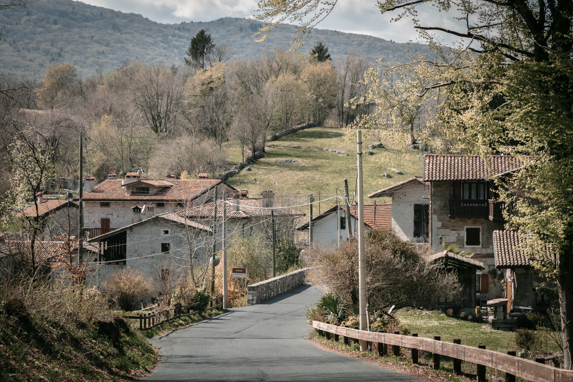 In questo microcosmo di borgate, la ruralità non è un ricordo polveroso, ma una realtà vibrante. Lo si percepisce dagli appezzamenti di terra che si rincorrono lungo il sentiero, dove la fatica dell'uomo sposa oggi l'efficienza dei mezzi moderni. A colpire lo sguardo è però la sapiente armonia tra pietra e legno, materiali che danno forma a case capaci di mostrare con orgoglio le proprie cicatrici storiche attraverso restauri rispettosi. Ma la bellezza risiede nei dettagli: nei passi che risuonano sui vecchi lastricati, nei piccoli ponti e nelle ancone votive.